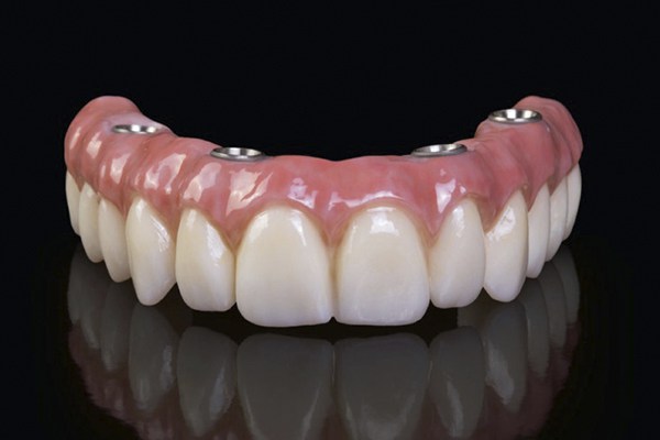 - Dois implantes anteriores retos e dois implantes inclinados a 45ºC, na zona posterior;